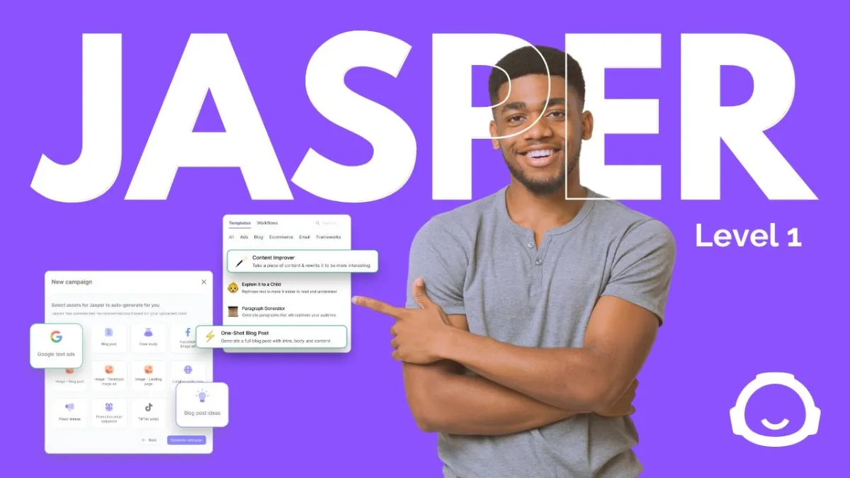 Explore beginner-level AI video tools, including Jasper's video features, for blog posts and social media.